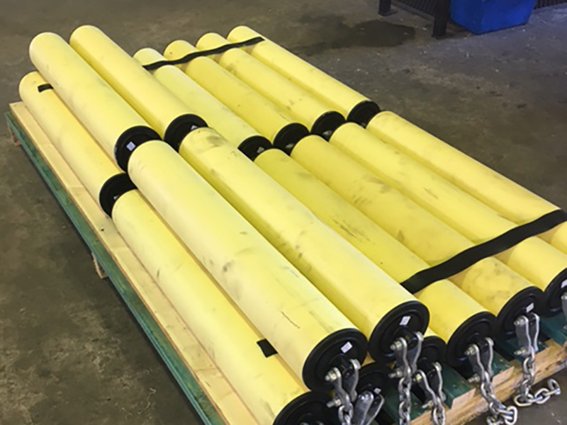 60 x 159Ø 6308 1800BW Vee disc returns heading to the Pilbara. Based on our R&D testing to ASTM G65 standard, CPS polyurethane wore 4 times slower than a standard steel shell. CPS polyurethane disc return rollers can be expected to yield a minimum life increase in the range of 100-300% over steel in areas of high wear, typically head/tail ends, shuttle/take-up areas and convex curves. CPS now produce a full range of PU disc vee & flat returns as well as impact rollers.