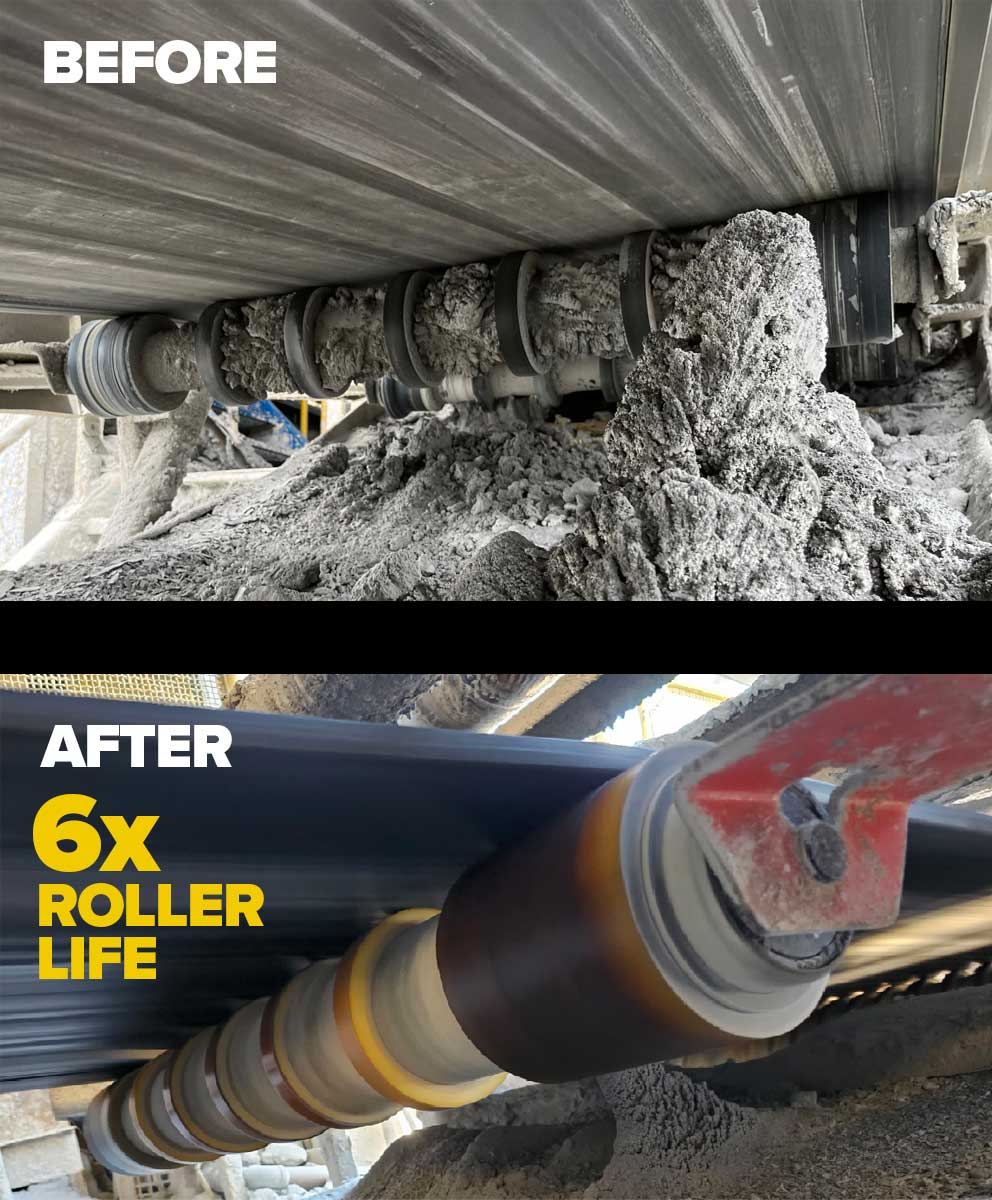 6x Roller Lifespan on Pebble Circuit Conveyor
