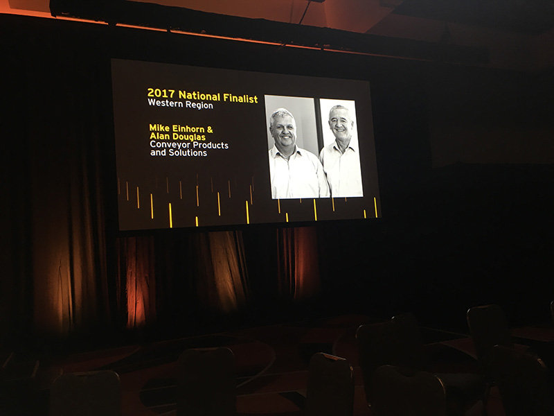 Posted at September 01, 2017At last nights EY Entrepreneur of the Year – Regional Awards Ceremony, CPS – Conveyor Products and Solutions Co-Founders and Directors, Mike Einhorn and Alan Douglas were awarded National Finalist for the Western Region along with Louise Daw (MiPlan Consulting Pty Ltd), Tony Galati (Galati Group) and Phil Harcourt (Duratec Australia Pty Ltd). All the finalist now move through to the national rounds with the National award ceremony being held in Melbourne in November 2017. Good luck to all the finalists.