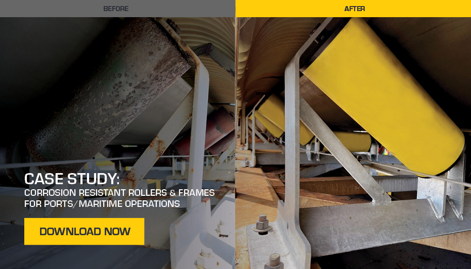Situated near the sea, the client’s port conveyors were prone to corrosion on both rollers and frames. Their project-supplied steel components were yielding severe erosion on metallic surfaces after only two to three years of operation, resulting in a high risk of structural failure and the need for premature replacement.