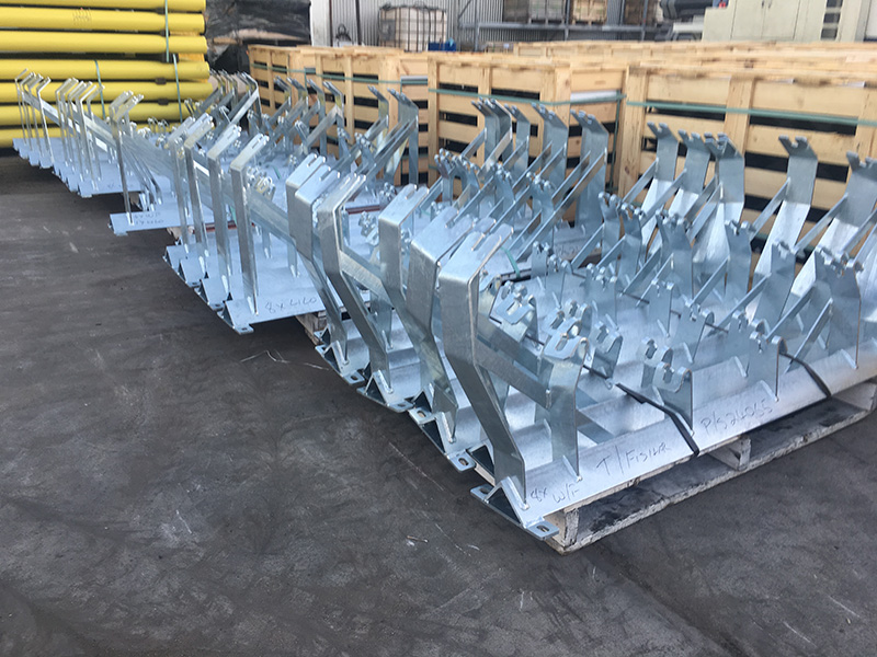 Two sets of 1600BW weigh idler frames just back from the galvanisers waiting for final QA checks before packaging with the rollers.