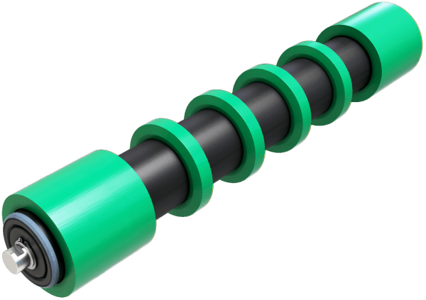 Manufactured using a steel shell and rubber discs. Offers a maintenance free solution in areas where return rollers are failing regularly due to carry back and shell wear. A good alternative to plain steel rollers on the return side.